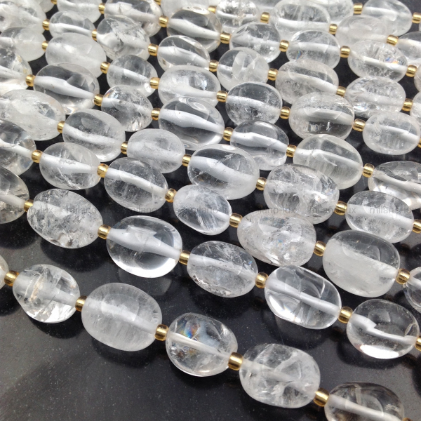 Бусины натурального Горного Хрусталя, размер бусин 13-18мм, форма свободная бочонок. Отверстие 1мм. В бусинах присутствуют каверны, включения и неровности, что не является браком натурального камня.