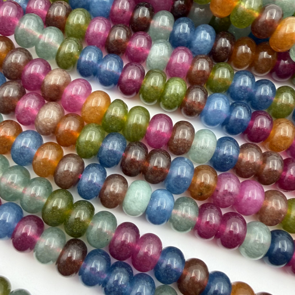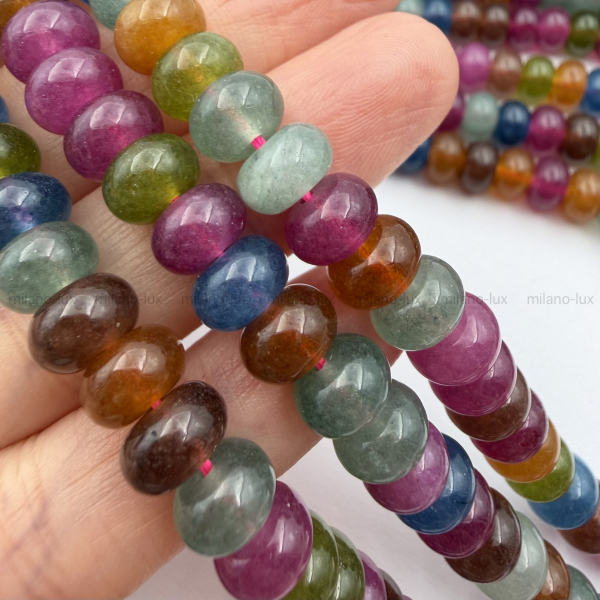 Бусины в форме рондель из натурального Халцедона, тонированы. Размер бусин примерно 8*5,2мм (+-0,2мм), отверстие 1мм.