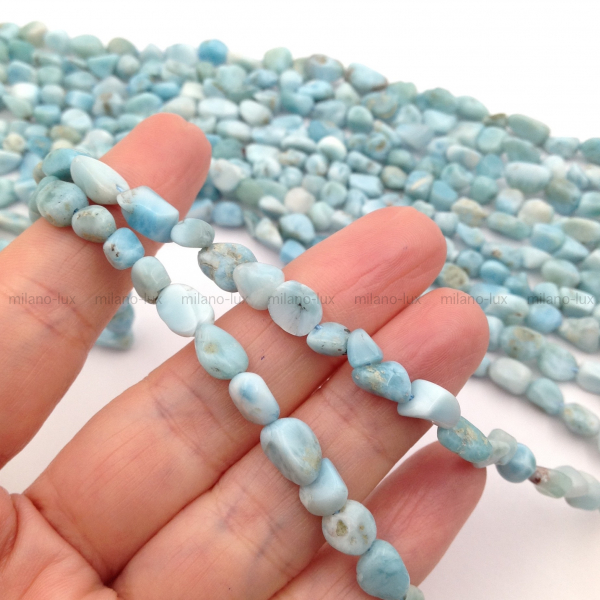 Бусины натурального Ларимара в свободной форме, размер 5-9мм (+-1мм), отверстие 0,8мм