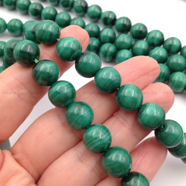 → Натуральный Малахит A Grade, шар 10.5мм; ПАРА бусин