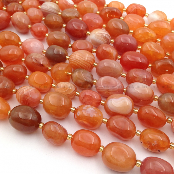 Натуральный рыжий Агат Ботсвана, бочонок 13-18мм; нить 40см
