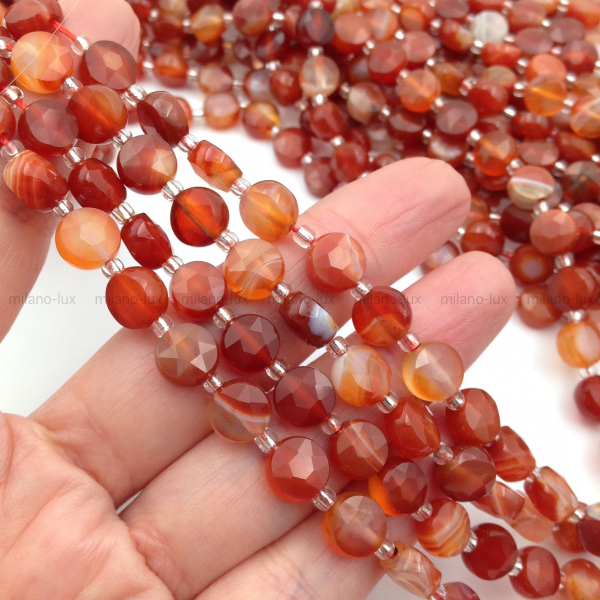 Бусины натурального Агата, размер бусин 8*5мм, форма гранёнея монета. Отверстие 0,8мм