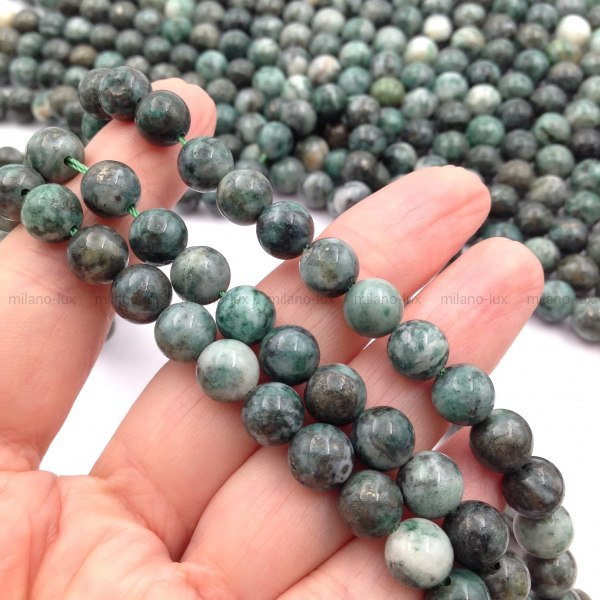 Бусины натурального Зелёного пирита, форма шар, размер 8мм (+-0,1мм), отверстие 0,8мм. Мелкие каверны, неровности и включения - не являются браком натурального камня.