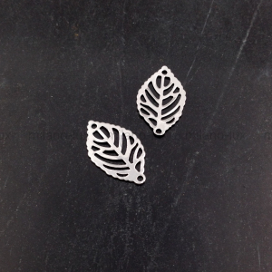 Элемент в форме Листа, изготовлена из Латуни с покрытием Платина, размер 18*10мм, пара отверстий позволяет использовать элемент в качестве Подвески и Коннектора