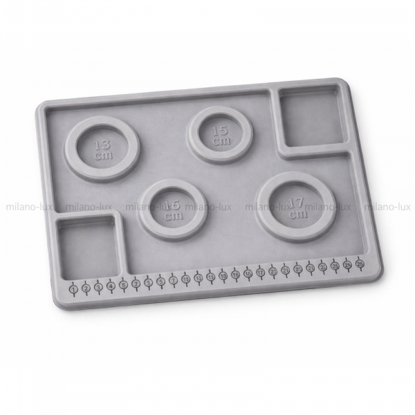 Планшет для сборки браслетов, разных размеров. Изготовлен из пластика с флоковым покрытием. Размер 20*29см, высота 1,6см. Обратите внимание, что размер браслета в размещённой ячейке будет зависеть от диаметра самих бусин.