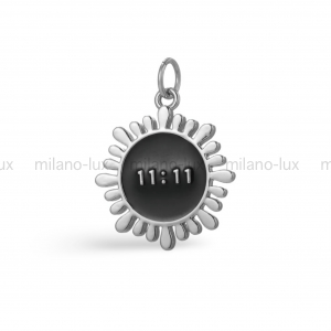 Подвеска 11:11 Чёрная эмаль, размер 17.5мм; цвет платина