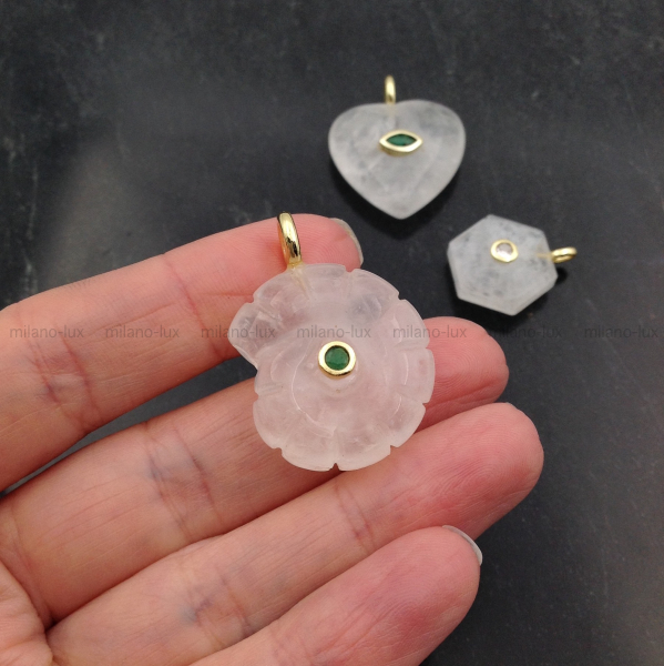 Подвеска из натурального Горного Хрусталя, размер примерно 25*23мм + бейл из латуни 7,5мм. Вставка - фианит. Внутренние включения присутсвуют, не являются браком - это особенность натурального камня, поверхностных трещин нет.