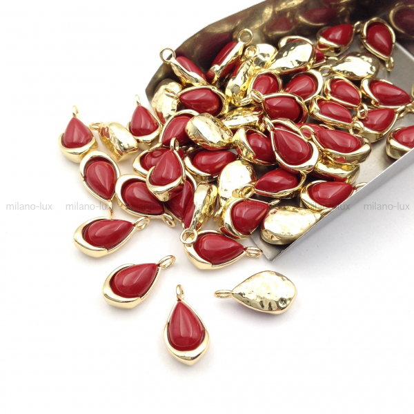 → Подвеска Капля с "Красным Агатом" 14мм; цвет золото