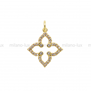 Подвеска Клевер 18.5*16мм с фианитами; цвет золото