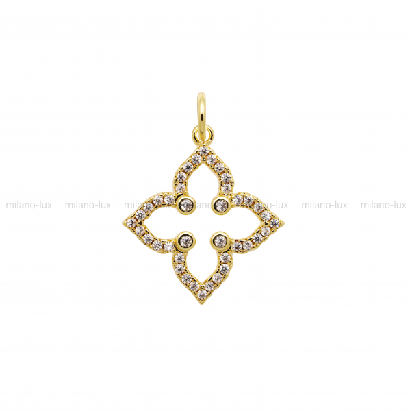 Подвеска в летней тематике Клевер Ван Клиф, изготовлена из латуни с покрытием Золото 18К, размер 18,5*16мм, соединительное колечко 5мм.