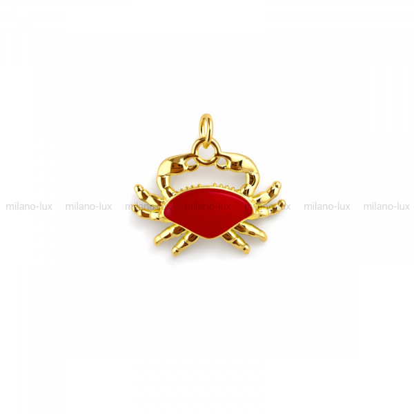 Подвеска в форме Краба, изготовлена латуни с покрытием Золото 18К, размер 23*18,5мм + соединительное кольцо 5мм