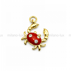 Подвеска Крабик с красной эмалью и фианитами; цвет золото
