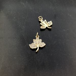 Подвеска в форме Листа, изготовлена из латуни с покрытием Золото 18К, размер 17*14,8мм +соеденительное колечко 5мм