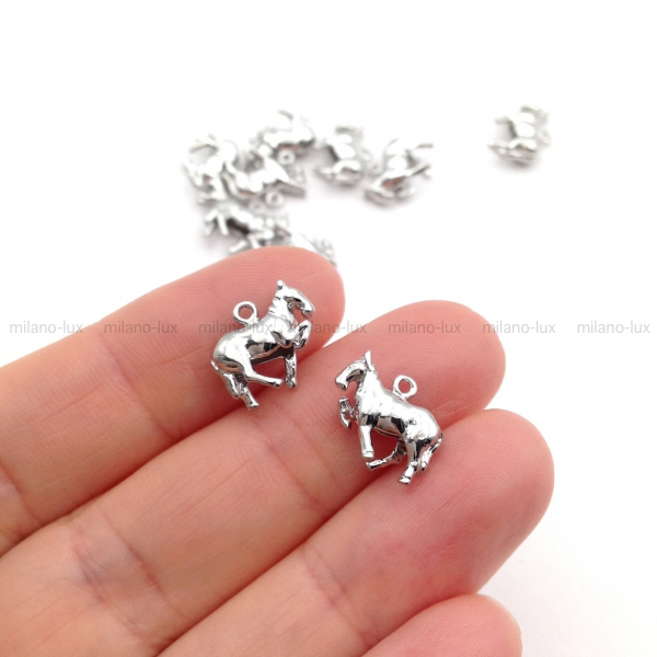 Подвеска в Новогодней тематике, форма Лошадь, изготовлена из латуни с покрытием Платина, размер 12*10мм.