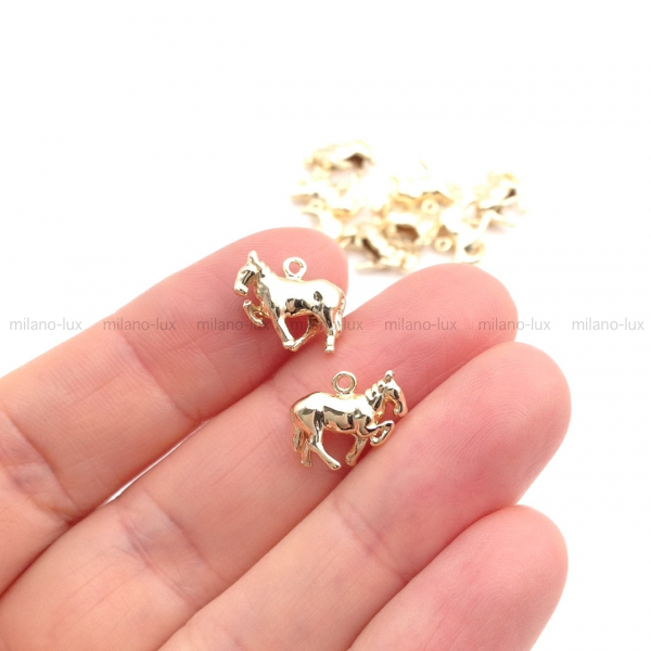 Подвеска в Новогодней тематике, форма Лошадь, изготовлена из латуни с покрытием Золото 18К, размер 12*10мм.
