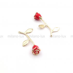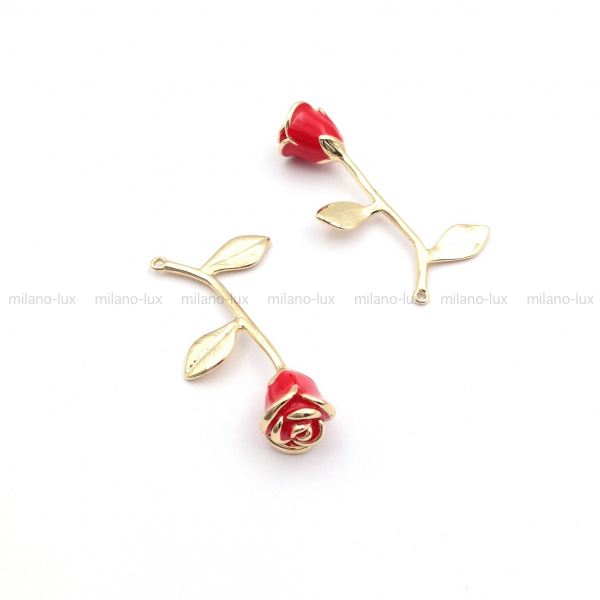 Подвеска для бижутерии в форме розы, изготовлена из латуни с покрытием Золото 18К. Размер подвески 37мм + петля 2,4мм. Эмаль по кругу бутона. Нанесение эмали вручную.