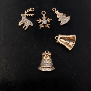 Подвеска в Новогодней тематике, форма колокольчик, изготовлена из латуни с покрытием Золото 18К, размер 12,5*10мм.