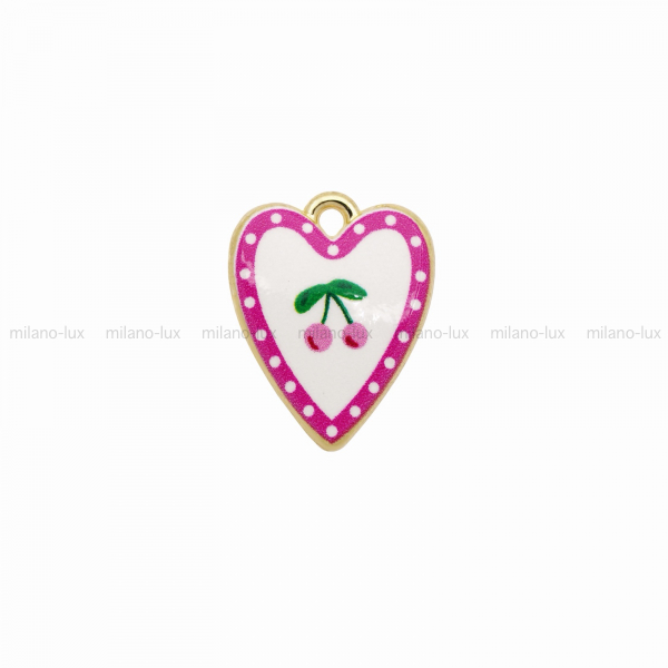 Подвеска с эмалью, Сердце Вишня; цвет золото