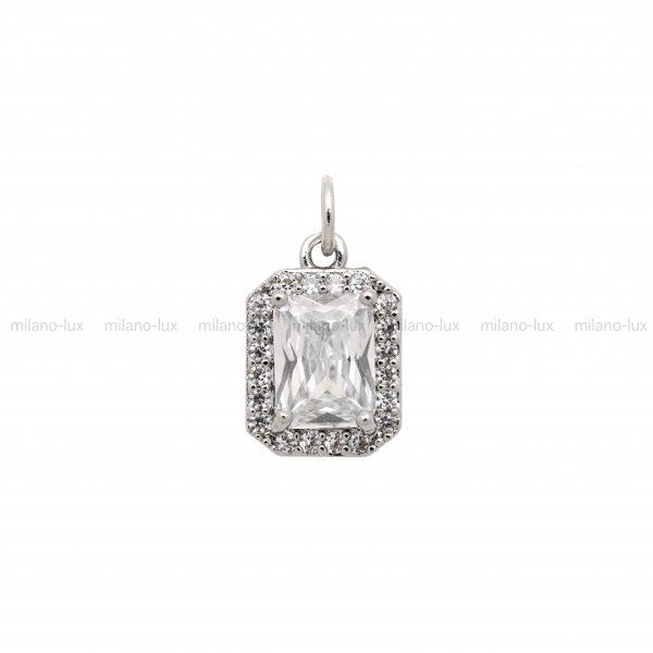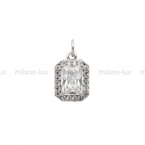 Классическая Подвеска прямоугольной формы с крупным фианитом, изготовлена из латуни с покрытием Платина, размер 13,5*9,5мм + соеденительное колечко 5мм