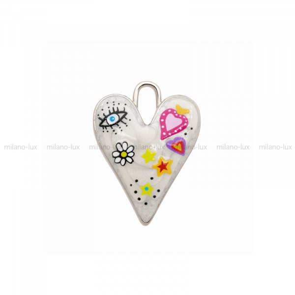 Подвеска Сердце 34*25мм, перламутр.смола, Розовое сердце; цвет платина