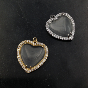 Подвеска в форме Сердца, изготовлена из латуни с покрытием Платина, размер 27*24,6мм +соеденительное колечко 5мм. Вставка - стекло и фианиты