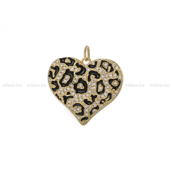 Подвеска Сердце леопардовый принт, 23мм; цвет золото
