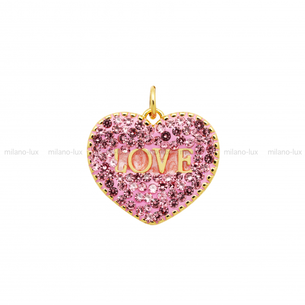 Подвеска Сердце Love Розовое с кристаллами; цвет золото