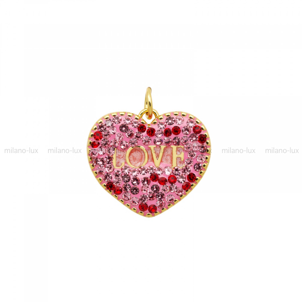 Подвеска Сердце с Розовыми и Красными кристаллами; цвет золото
