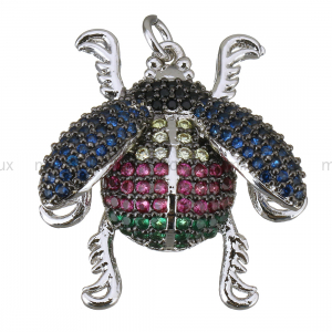 → Подвеска Жук 27*28мм, крылья- синие Фианиты, цвет платина