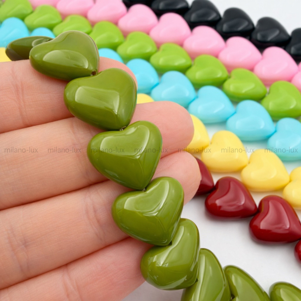 Сердце Майорка 13*15мм, Оливковый; 10 бусин