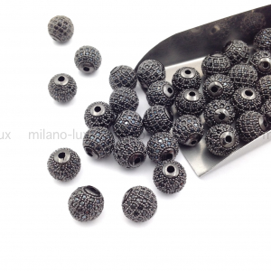 Бусина для украшений в форме шар, Размер 10мм, отверстие 1,5мм. Фурнитура премиального качества, изготовлена из латуни с чернением, инкрустировано микро фианитами. Лучшая фурнитура ювелирного качества для создания бижутерии своими руками, актуальные модели по выгодной цене.