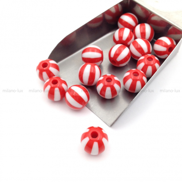 Шар полосатый Красный, 12мм, акрил