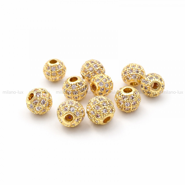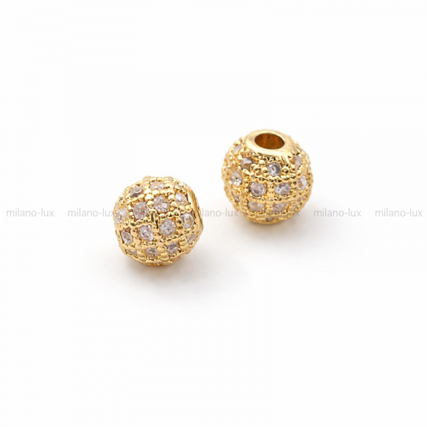 Бусина для украшений в форме шар, Размер 6мм, отверстие 1мм. Фурнитура премиального качества, изготовлена из латуни с позолотой 18К, инкрустировано микро фианитами. Лучшая фурнитура ювелирного качества для создания бижутерии своими руками, актуальные модели по выгодной цене.