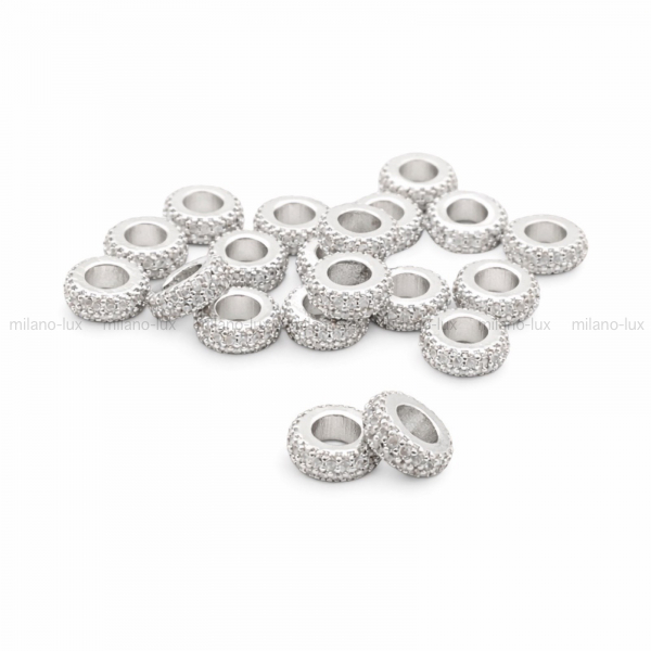 Бусина спейсер из латуни с покрытием Платина, размер 7,5*2,8мм, внутренний диаметр 3,6мм. Вставки - фианиты.