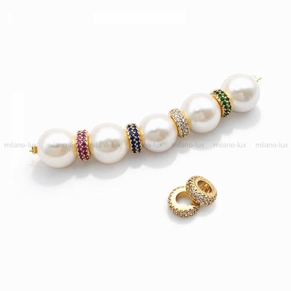 Бусина спейсер из латуни с покрытием Золото 18К, размер 7,5*2,8мм, внутренний диаметр 3,6мм. Вставки - фианиты.