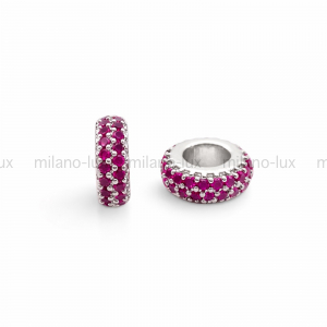 → Спейсер бусина 2 ряда Рубиновых фианитов, 7.5мм; цвет платина