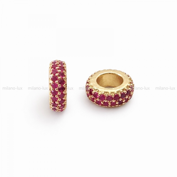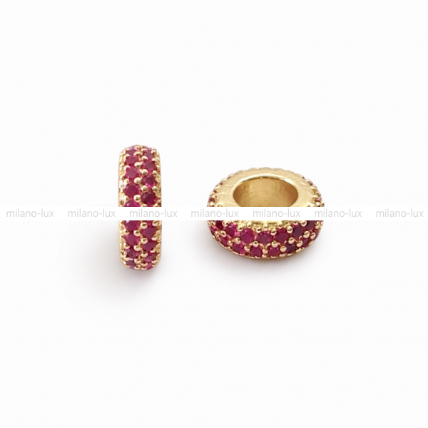 → Спейсер бусина 2 ряда Рубиновых фианитов, 7.5мм; цвет золото