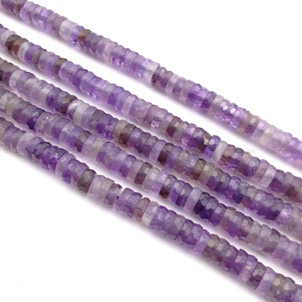 Бусины в ювелирной огранке из натурального Аметиста в форме Спейсер, размер примерно 6,3*2мм (+-0,1мм), отверстие 0,7мм. Камень природного происхождения