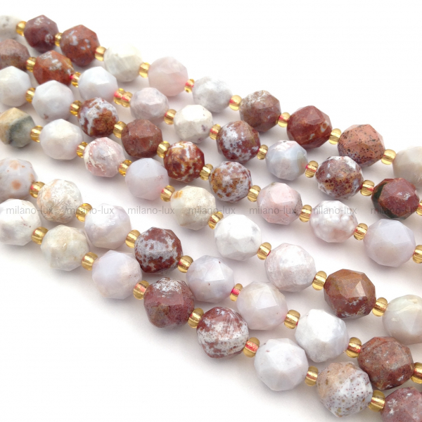 Натуральная Яшма в форме шар с огранкой, размер примерно 8мм (+-0,2мм), отверстие 0,8мм
