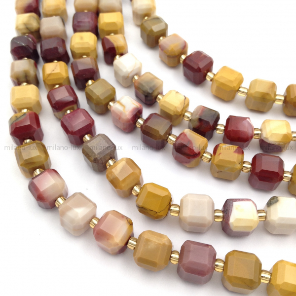Яшма Мукаит, ювелирный Куб 8мм; нить 38см