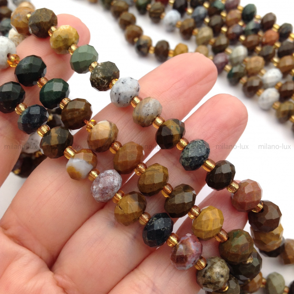 Натуральная Яшма в ювелирной огранке рондель, размер примерно 8,5*5,5мм (+-0,1мм), отверстие 0,9мм
