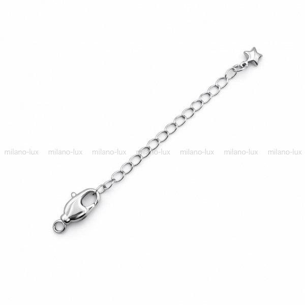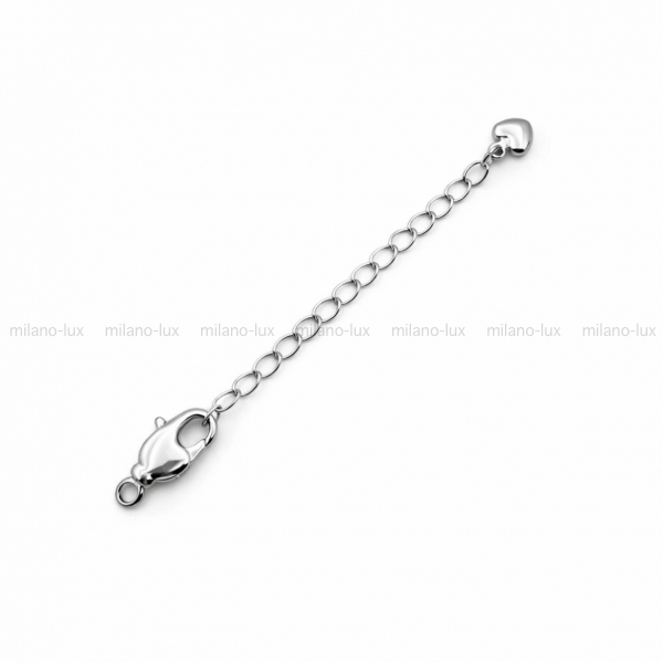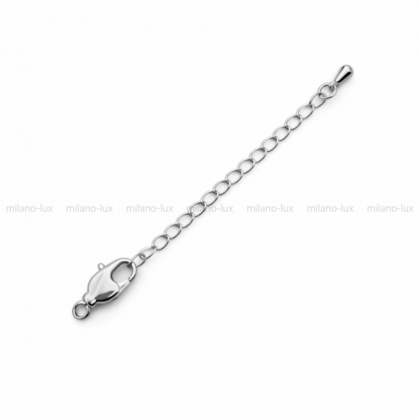 Карабинчик из Латуни с покрытием Платина, размер 15мм с учётом поворотного кольца. Удлинительная цепочка примерно 5см + объёмный утяжелить