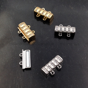 Замок с магнитом, изготовлен из латуни с покрытием Платина, вставка - фианиты, размер 15*6,5мм+ петли, высота 5,2мм.
