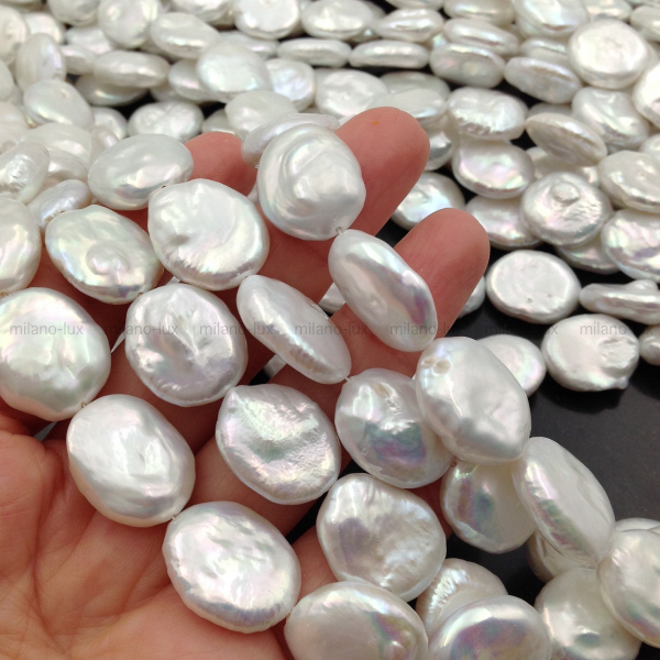 Натуральный культивированный жемчуг высокого качества, в форме овала барочного, размер 19*15мм (+-1мм), толщина примерно 6-8мм, отверстие 0,6мм. Очень высокое Качество AА Grade. Cияние перламутра очень яркое-металлический бело-серебристый блеск жемчуга высокого класса. Нет некрасивых природных включений, нет дефектов и сколов, нет ярко выраженных бороздок.