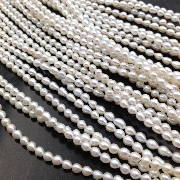 Жемчуг натуральный AA Grade Белый, каплевидный 4.5*5мм; нить 39см