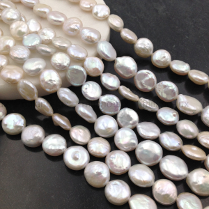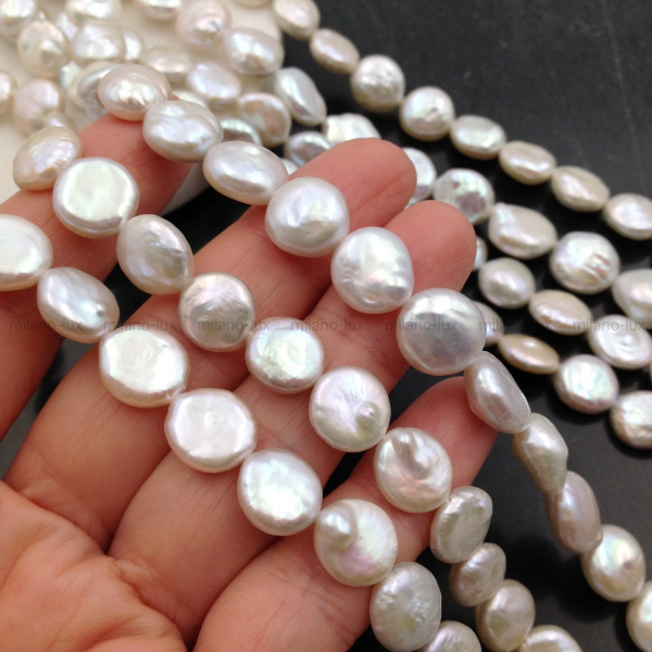 Жемчуг Натуральный AA Grade, монета барочная 10.5мм; нить 39см
