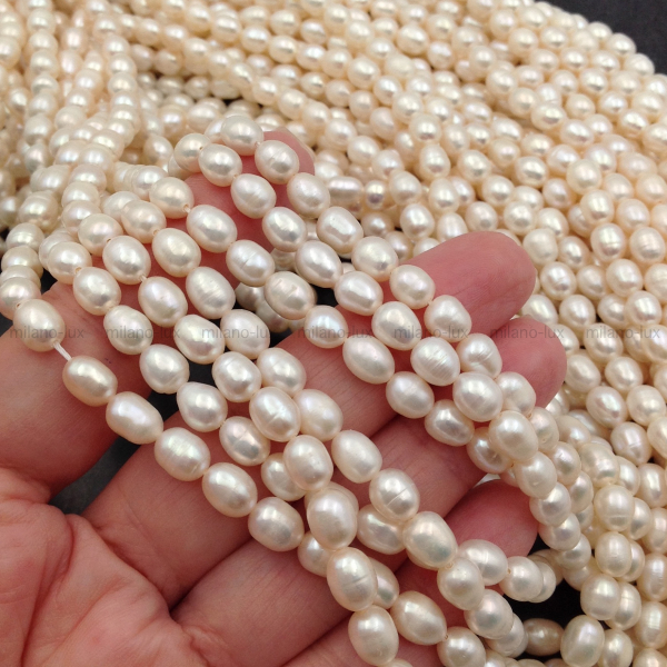 → Жемчуг натуральный, Рис 6-7*5.5мм, белый; нить 37см