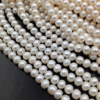 Барочный Жемчуг A Grade 6*5мм, Белый; нить 39см