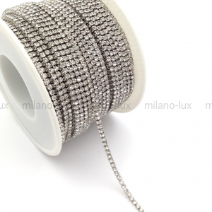 → 1.5мм Стразовая Цепь, цвет Crystal, цвет платина; 1 метр
