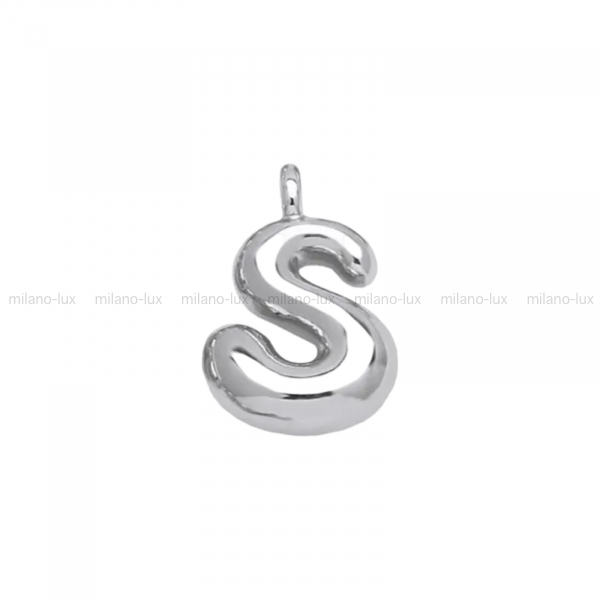 Подвеска из латуни с покрытием Платина, в виде буквы. Размер примерно 18.5*11мм с учетом петли, внутренний диаметр петли 3,8мм.